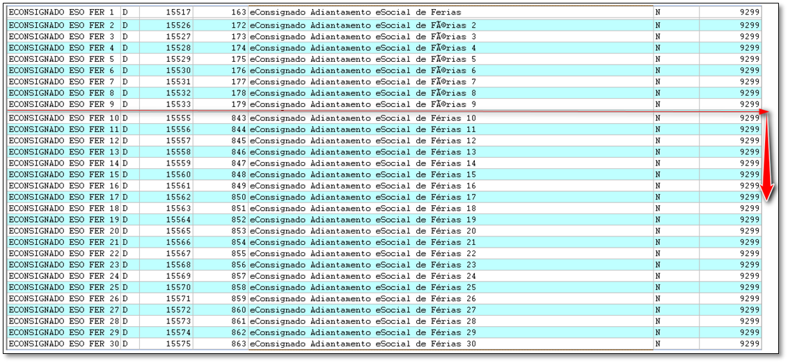 - 163, 172, 174 a 179: para De/Para de férias com o eSocial.