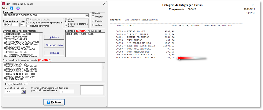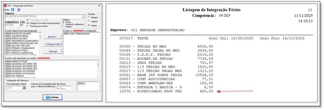 O sistema consolidará o valor total dos descontos de eConsignado no Evento 864 – eConsignado Prov. Férias, que será exibido de forma unificada na integração de férias.