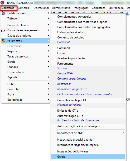 1. Localidade Acessando o caminho Cadastro → Parâmetros → Gerais na aba de MDFe 2. Rotina![]()