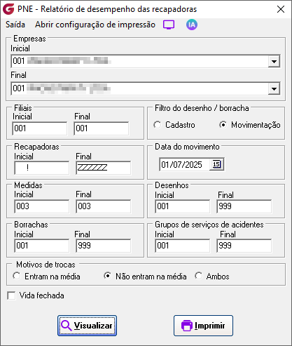 Módulo: Pneus (PNE) Caminho de acesso: > Relatórios> Desempenho das recapadoras |