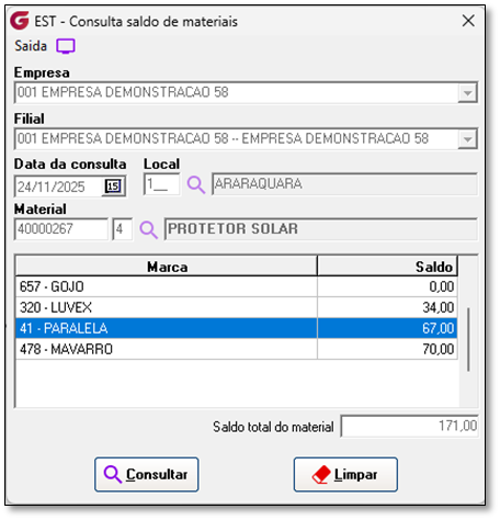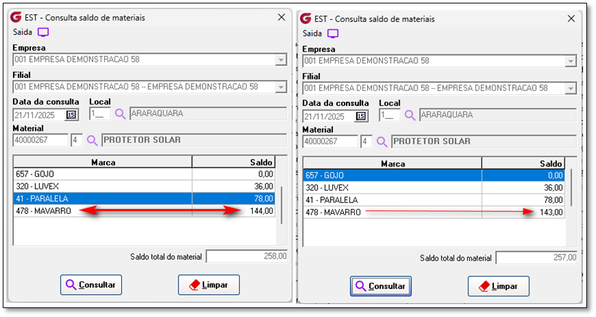 A baixa no saldo foi efetuada com base no cadastro da marca.
