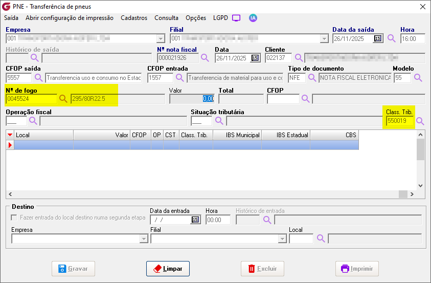 Na rotina de venda, ao informar o pneu, o campo será preenchido como sugestão, podendo ser alterado ou retirado.