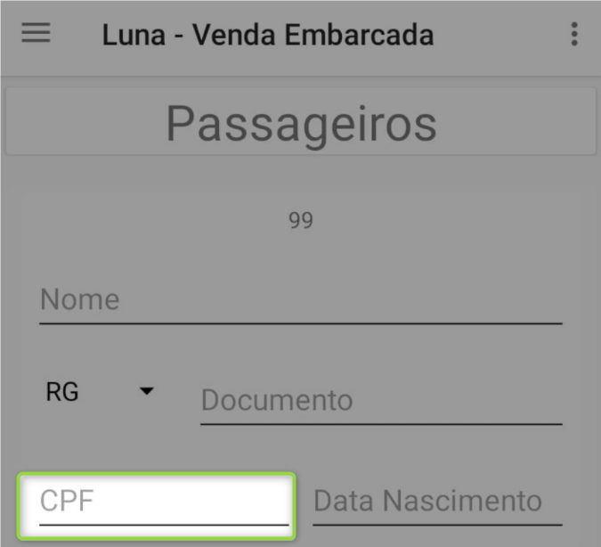 Preenchimento automático dos dados do passageiro ao digitar o CPF do cliente. |