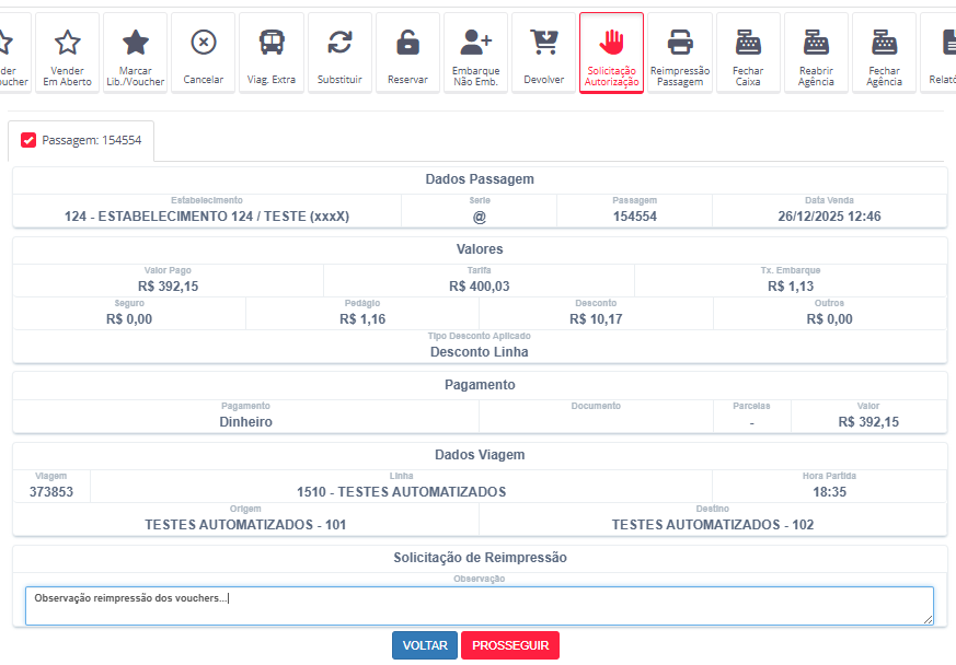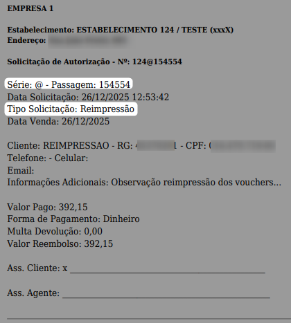 “Utilizar Solicitação Autorização na Reimpressão de Voucher”