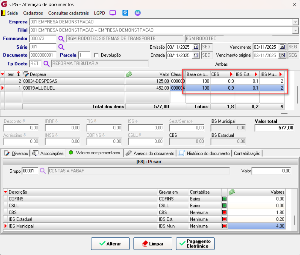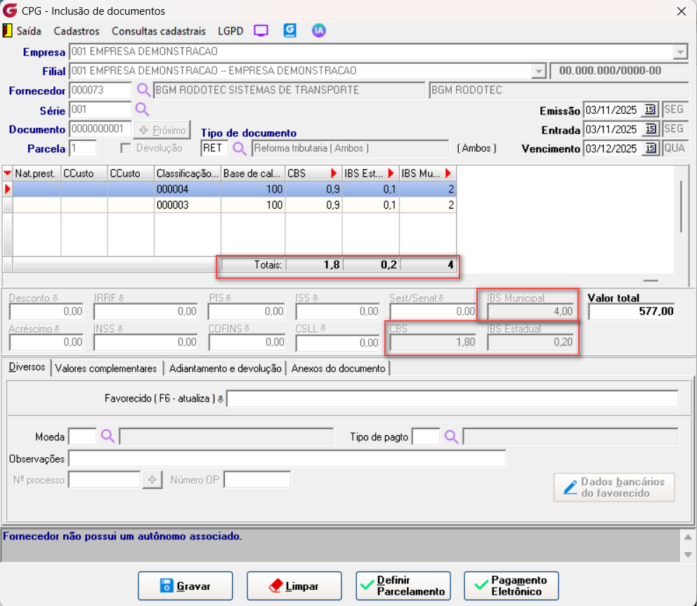 Incluímos no módulo CPG do sistema Globus os novos campos referentes aos impostos da Reforma Tributária, garantindo que fiquem disponíveis para uso futuro. |