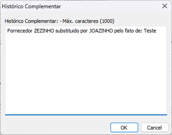 Essa justificativa é guardada no histórico complementar e não é sobreposta: