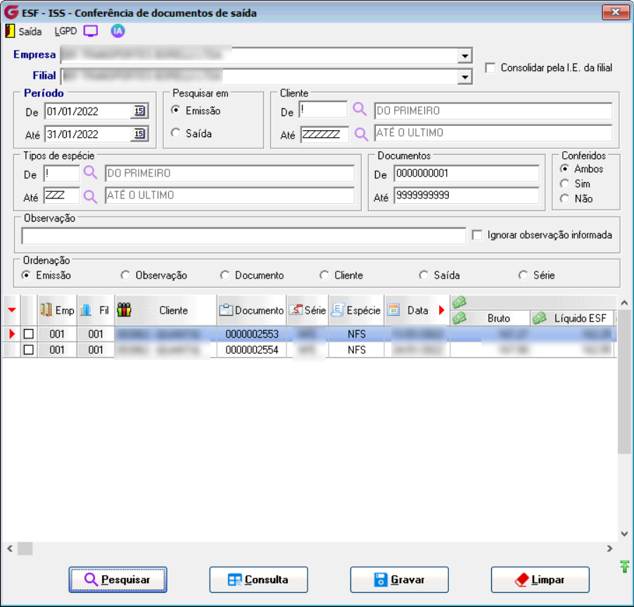 Documentos de Saída - Livro de ISS - Conferência de Documentos