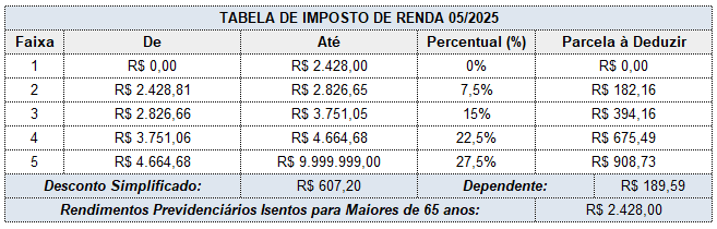 Memória de cálculo Lei 15.270/2025 - Janeiro/2026 - Tabela Atual mantida