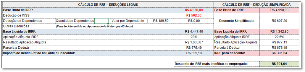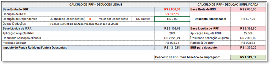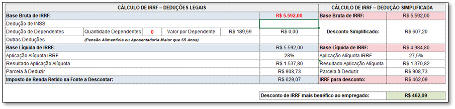 O cálculo apresentado será com base na tabela com vigência a seguir: Tabela Atualizada de IRRF