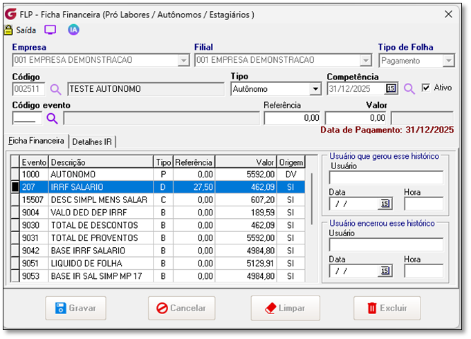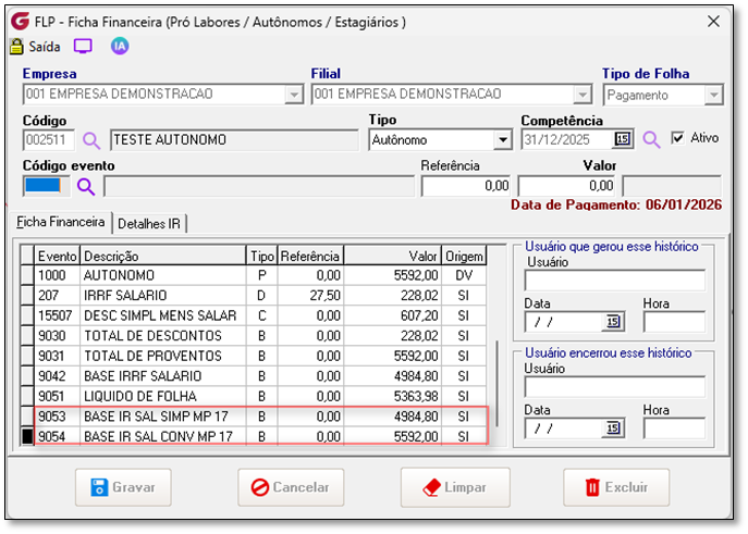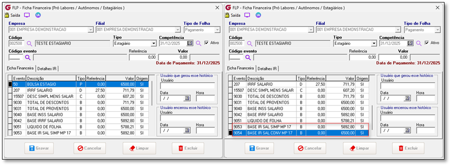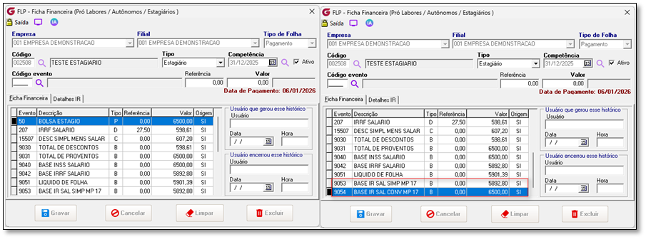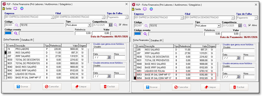 Memória de cálculo atual Data de Pagamento em 31/12/2025