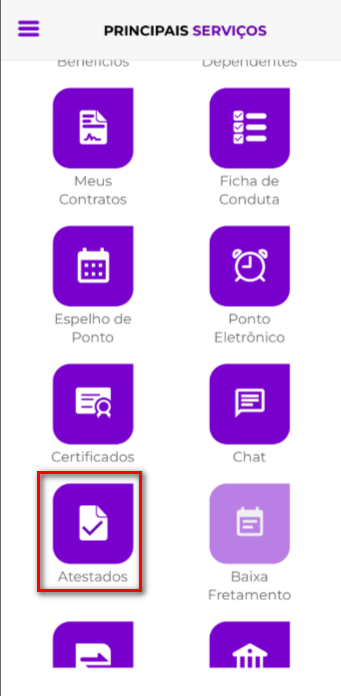 O usuário deverá selecionar o tipo de atestado: