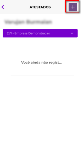 Ao clicar no botão '+', será aberta a tela Novo Atestado, onde será possível cadastrar um novo atestado.