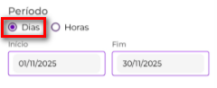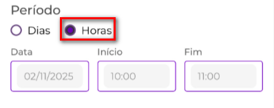 Essa opção deve ser utilizada quando o afastamento ocorrer por dia ou dias. Opção: Horas
