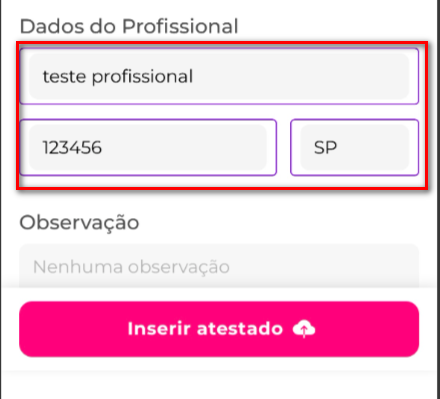 Preencher as informações do profissional responsável pelo atestado: