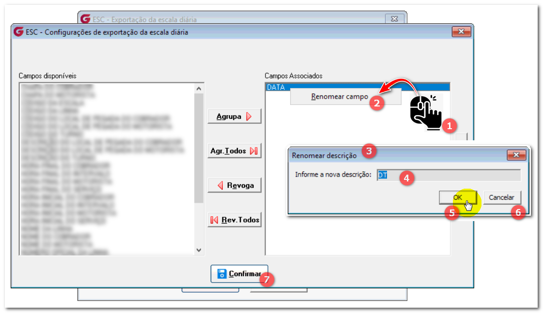 - Passo 2: O sistema apresentará a opção Renomear Campo;