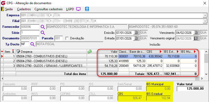 Implementada integração dos valores dos impostos CBS e IBS aos módulos contas a pagar e escrituração. Nota fiscal de abastecimento externo ![]() Contas a pagar ![]() Se algum auxílio ou esclarecimento for necessário, conte conosco através de nossos canais de atendimento. Telefone: (11) 5018-2525. Portal do Cliente: https://portaldocliente.praxio.com.br/ #PodeContar