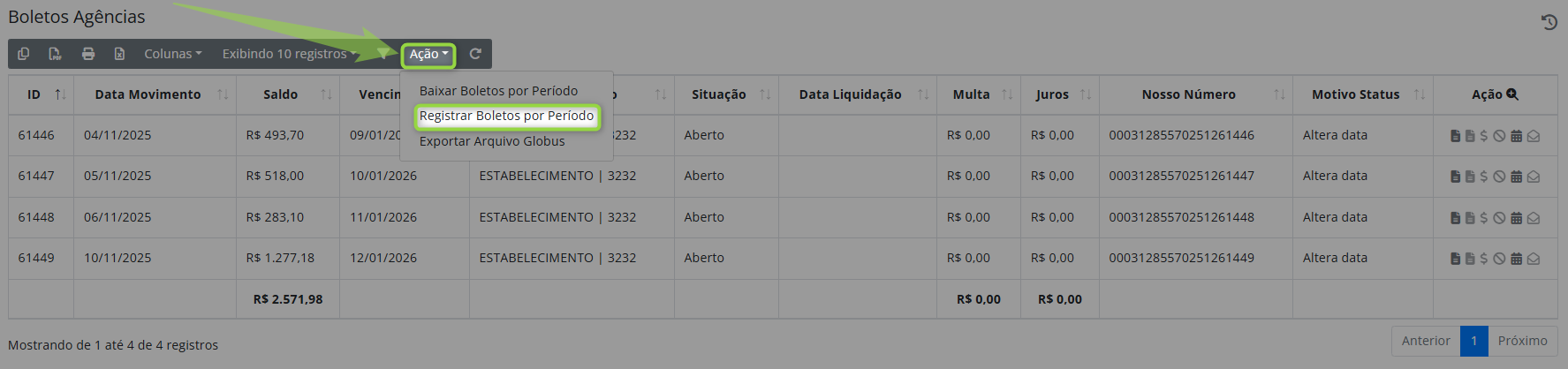 Implementada funcionalidade que permite a geração manual de boletos em lote, proporcionando mais agilidade no processo. O que há de novo: Adicionada à rotina de Boletos do Portal Web Luna a funcionalidade de geração de boletos em lote.