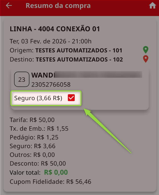 O que há de novo: Foi implementada atualização automáticado aplicativo de vendas Praxio Fidelidade funcionalidade que mantém habilitada por padrão a flag de cobrança da taxa de seguro sempre que a taxa estiver disponível no processo de compra da passagem.