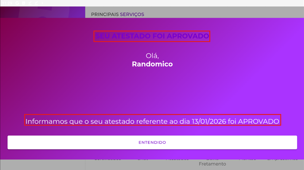 APP Tá.On - Notificação quando o atestado for aprovado ou reprovado. |