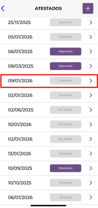 Já os atestados aprovados irão aparecer na relação dos atestados lançados, porém não poderão ser editados e nem enviados novamente.