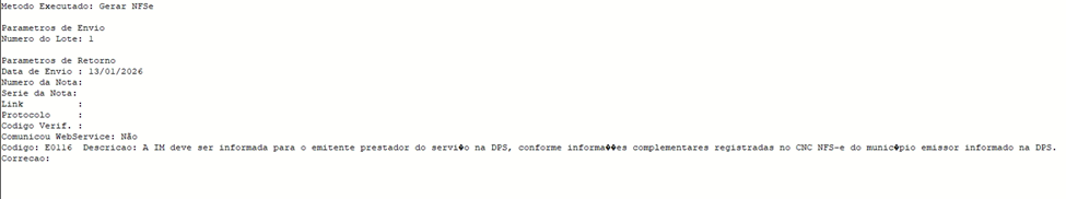 Caso seu município precise desta informação e você não esteja com parâmetro marcado, enfrentará a rejeição abaixo: