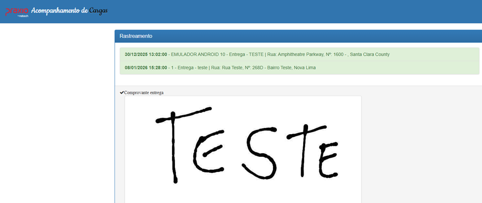 Adicionado a localização atual ao evento de entrega do app Wscan. Imagens meramente ilustrativas: