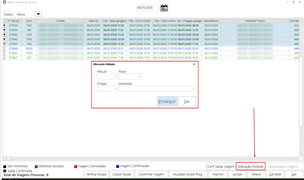 Implementado a funcionalidade “Alteração Múltipla”, onde será possível alterar de uma só vez o veículo e o motorista das viagens selecionadas.