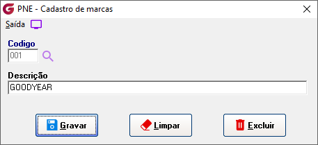 Módulo: Pneus (PNE) Caminho de acesso: > Cadastros> Marcas |