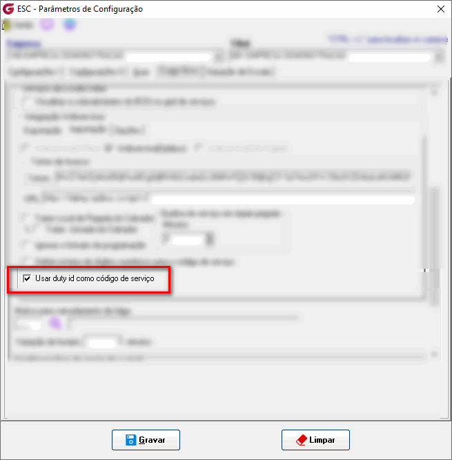 Quando o parâmetro está marcado, o sistema irá usar o código do Duty ID como código do Serviço.