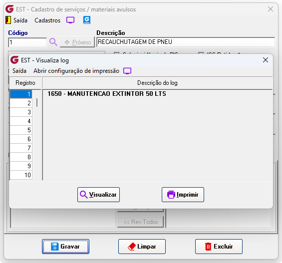 Módulo: Estoque (EST) Caminho de acesso: >Cadastros> Serviços / Materiais avulsos |