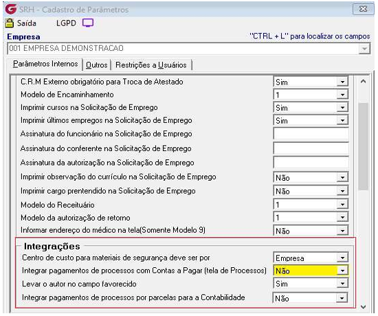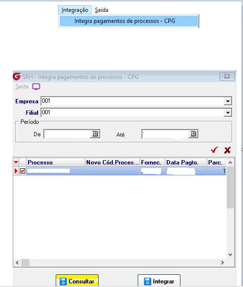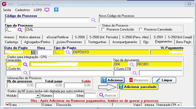 Procedimento para orientação da integração de Pagamentos de Processos, com o contas à pagar.