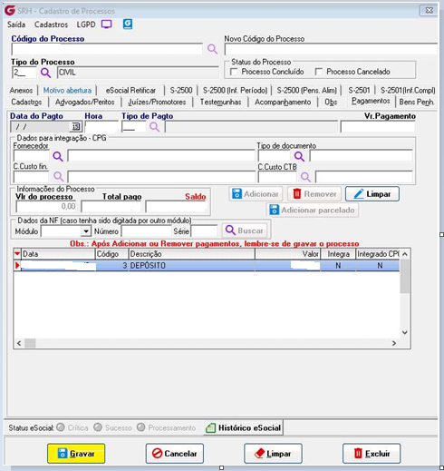 Salvar o cadastro, para que os lançamentos sejam enviados corretamente no Contas a Pagar. ![]() 3. CADASTRO DE RÉUS 2. Garantir que os dados estejam corretos e atualizados.