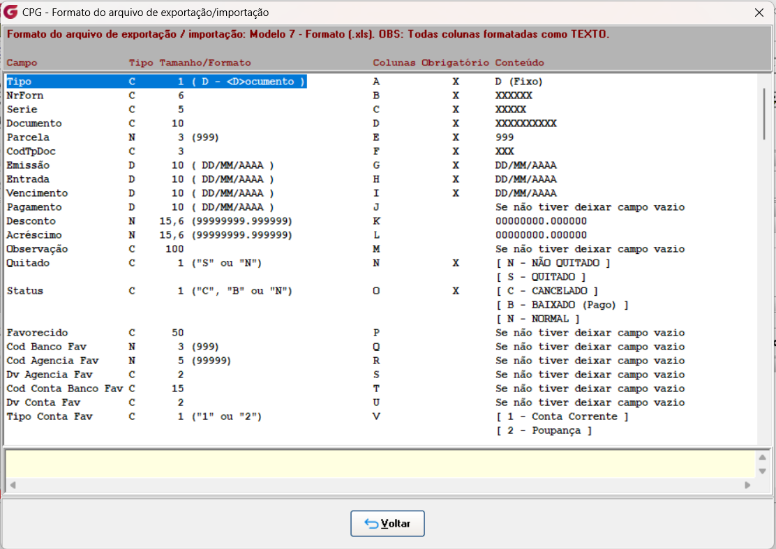 No modelo 07 por ser arquivo em Excel é necessário definir o intervalo da tabela
