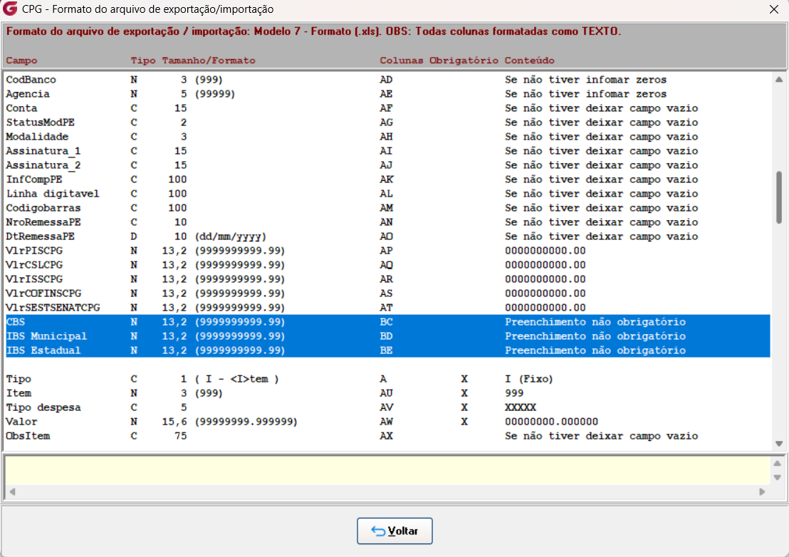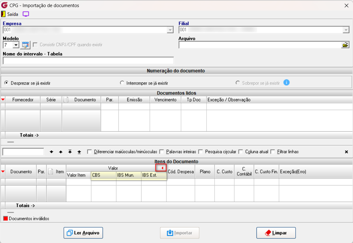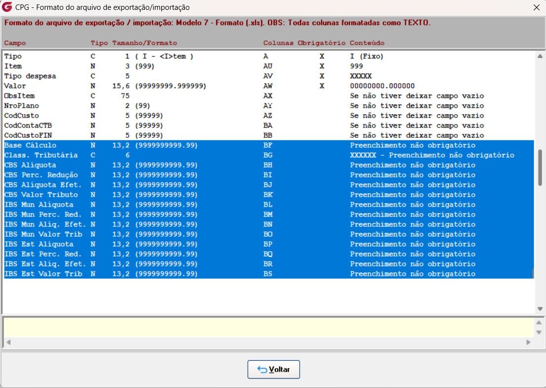 Incluídos no módulo CPG, na importação de documentos modelo 07, os campos referentes aos novos impostos da Reforma Tributária. |
