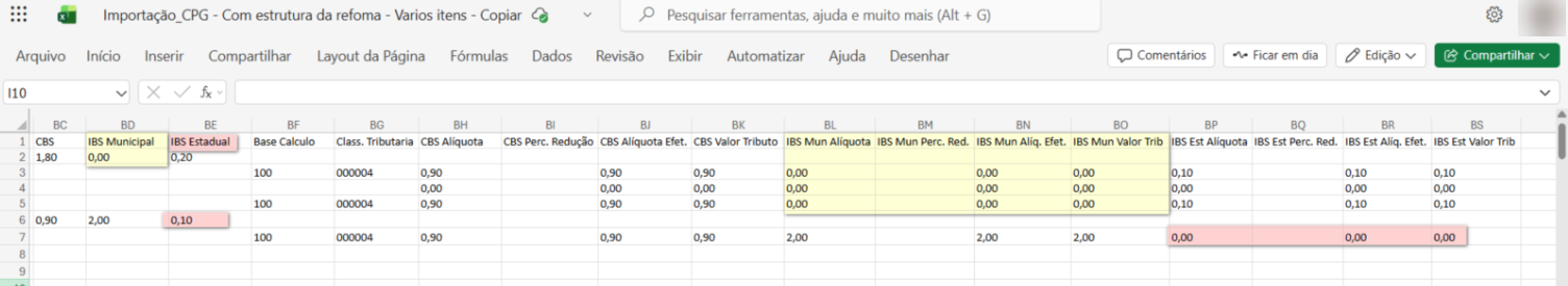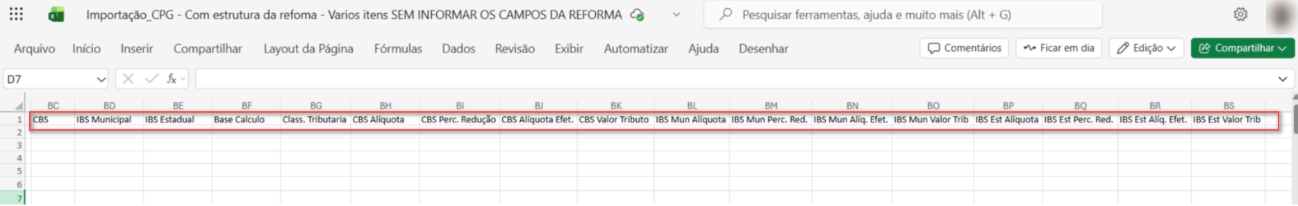 - Importação sem preenchimento dos campos referente a reforma tributária.