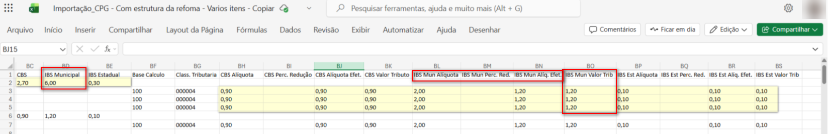 Com o objetivo de preparar o sistema para as novas exigências da Reforma Tributária, foram criados campos destinados à importação dos tributos correspondentes.