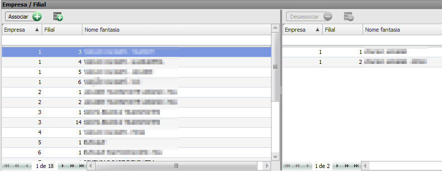 Exibir pneus vendidos - Marque essa opção para incluir os pneus que já foram vendidos No grid Empresa/Filial, selecione as empresas/filiais que deseja consultar e clique em associar, ou clique no botão ao lados para selecionar todas.