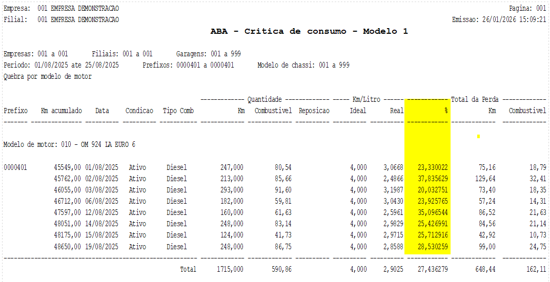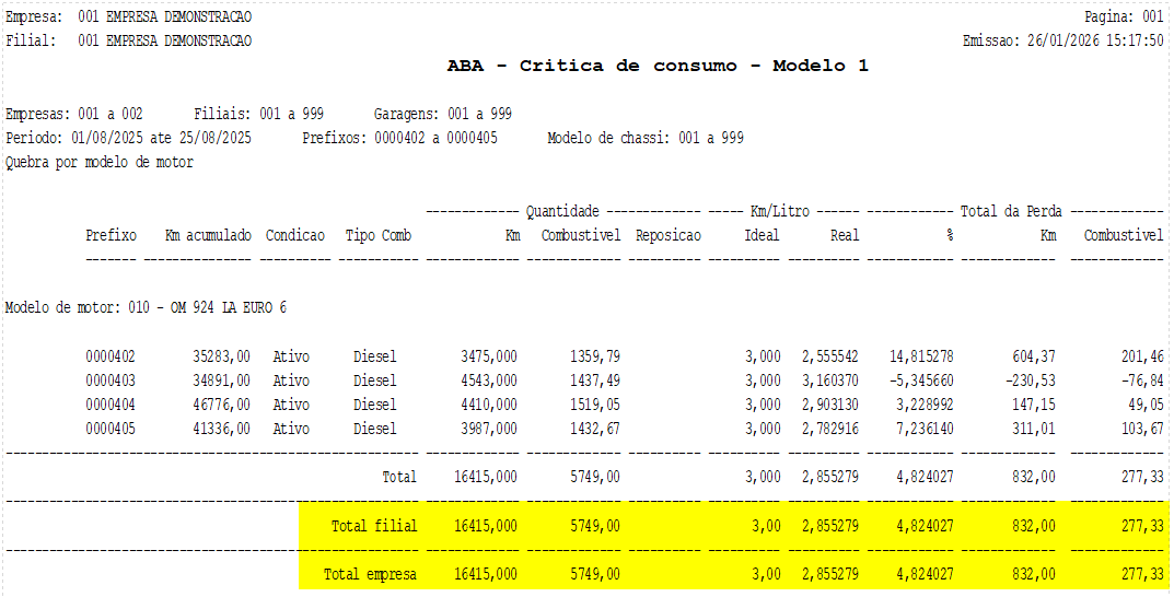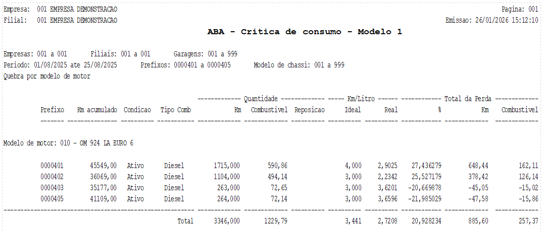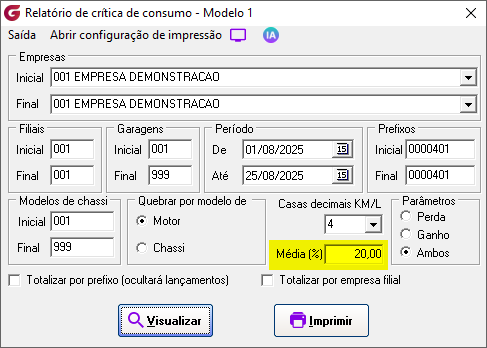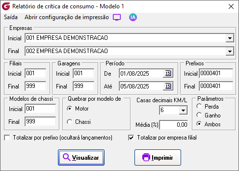 Módulo: Abastecimento (ABA) Caminho de acesso: > Relatórios> Crítica de consumo > Modelo 1 |