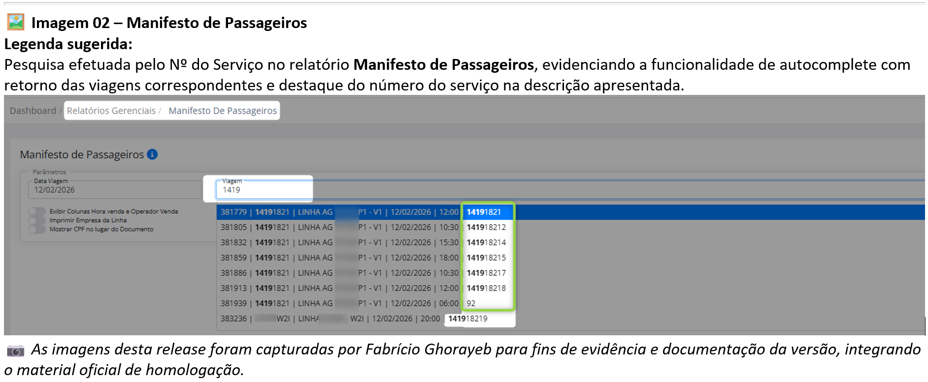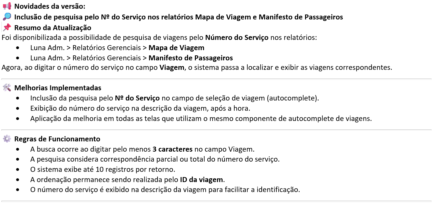 Inclusão de pesquisa pelo Nº do Serviço nos relatórios Mapa de Viagem e Manifesto de Passageiros. |