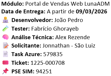 Ilustração do novo parâmetro *Portal Web Luna ADM. Nomes, documentos e telefones lançados nesse teste, são meramente fictícios. “Atendendo assim as normas da LGPD”. |