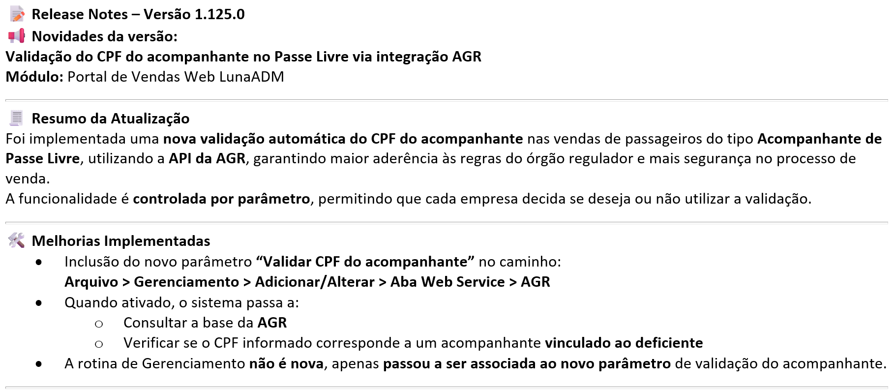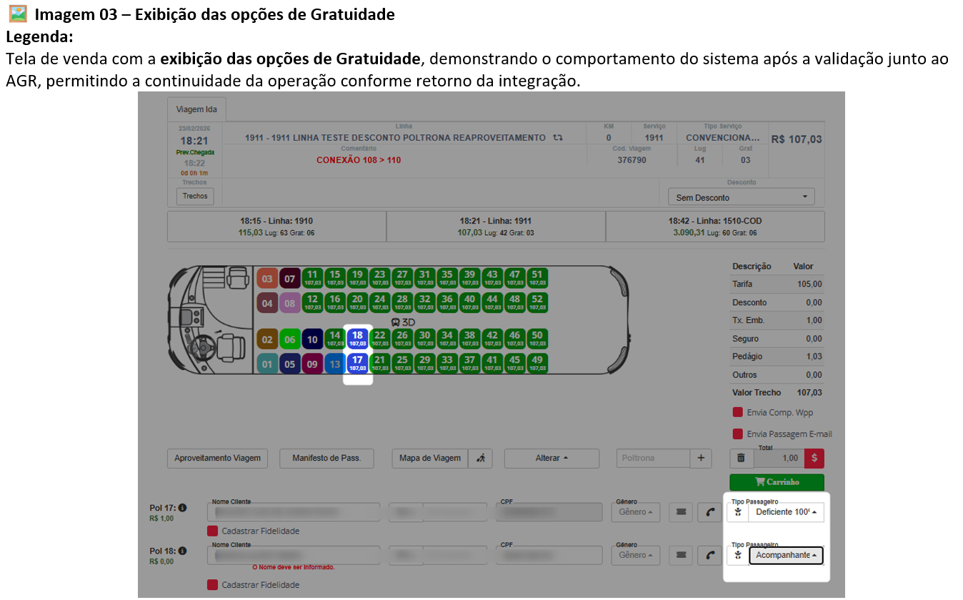 Validação do CPF do acompanhante no Passe Livre via integração AGR. |