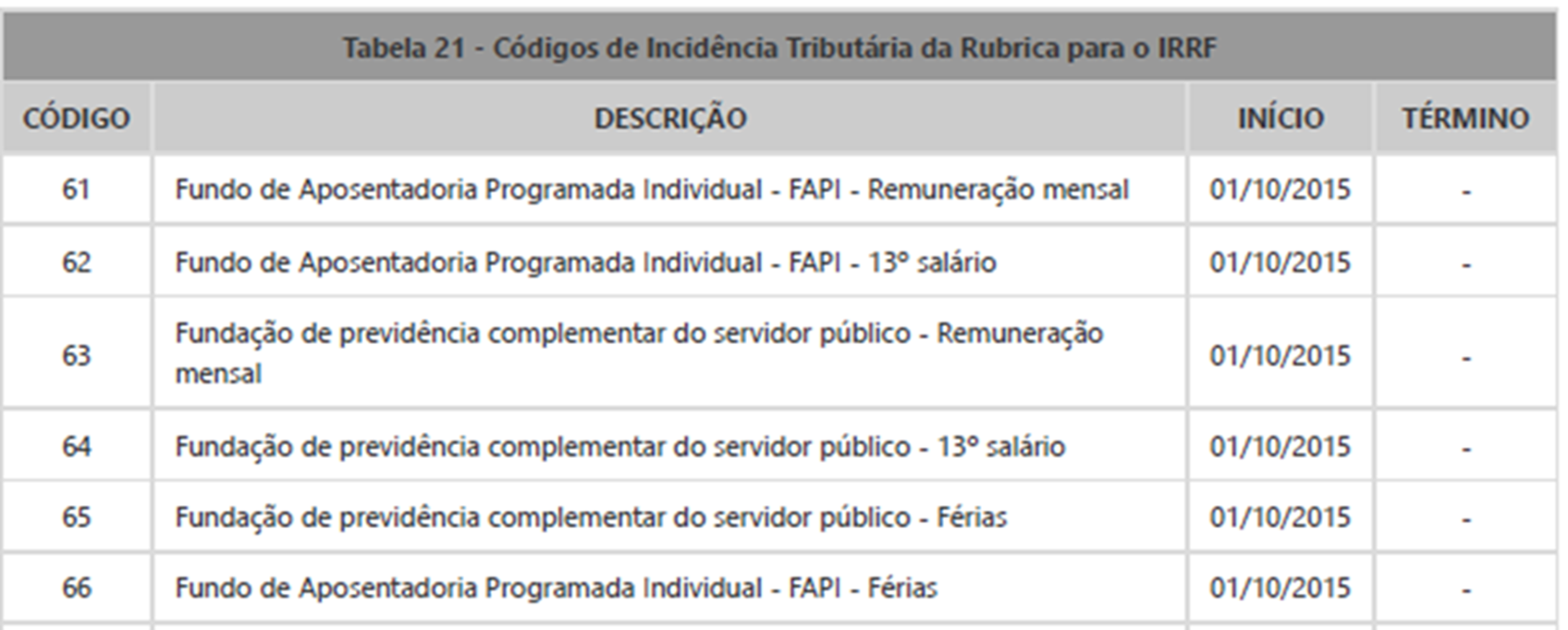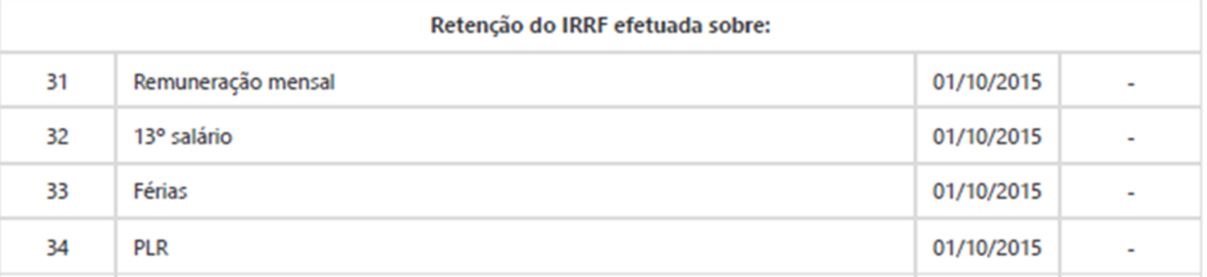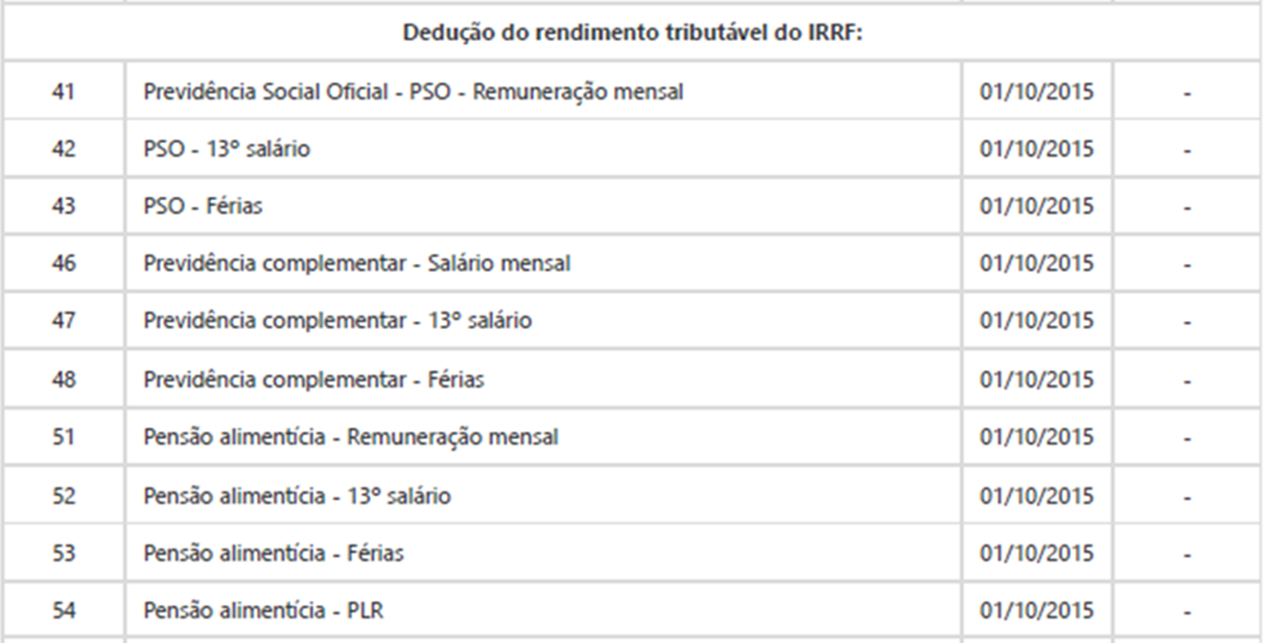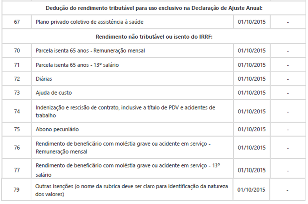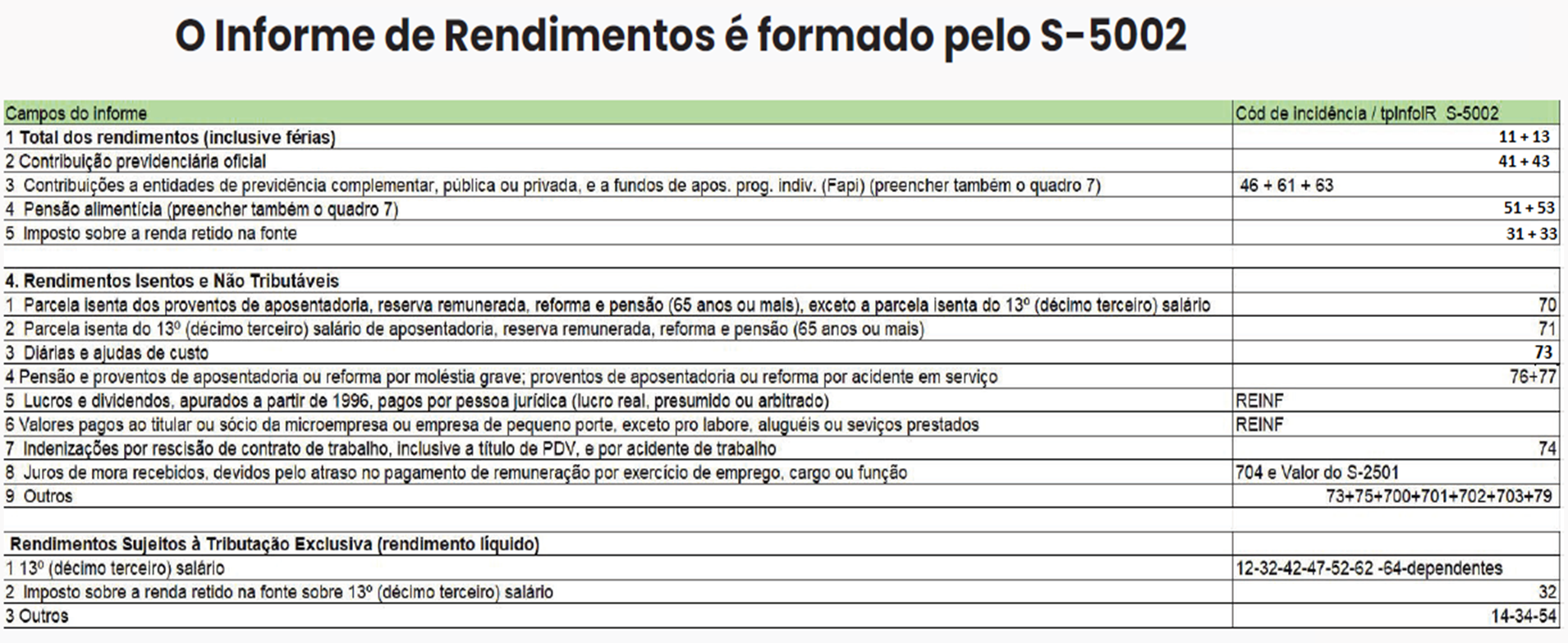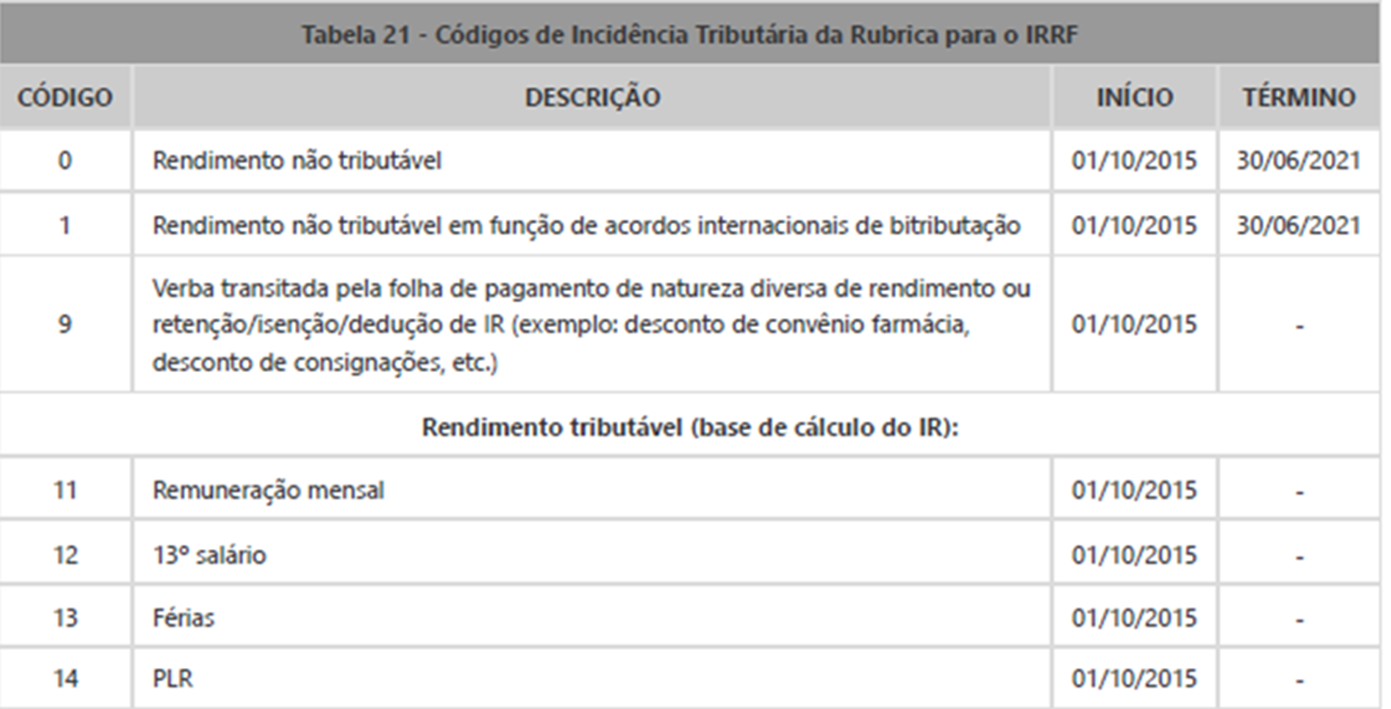 Essa tabela traz todas as incidências existentes para IR atualmente, então se faz necessário uma revisão da parametrização dos principais eventos de folha que são utilizados mês a mês para garantir que o informe de rendimentos esteja correto.