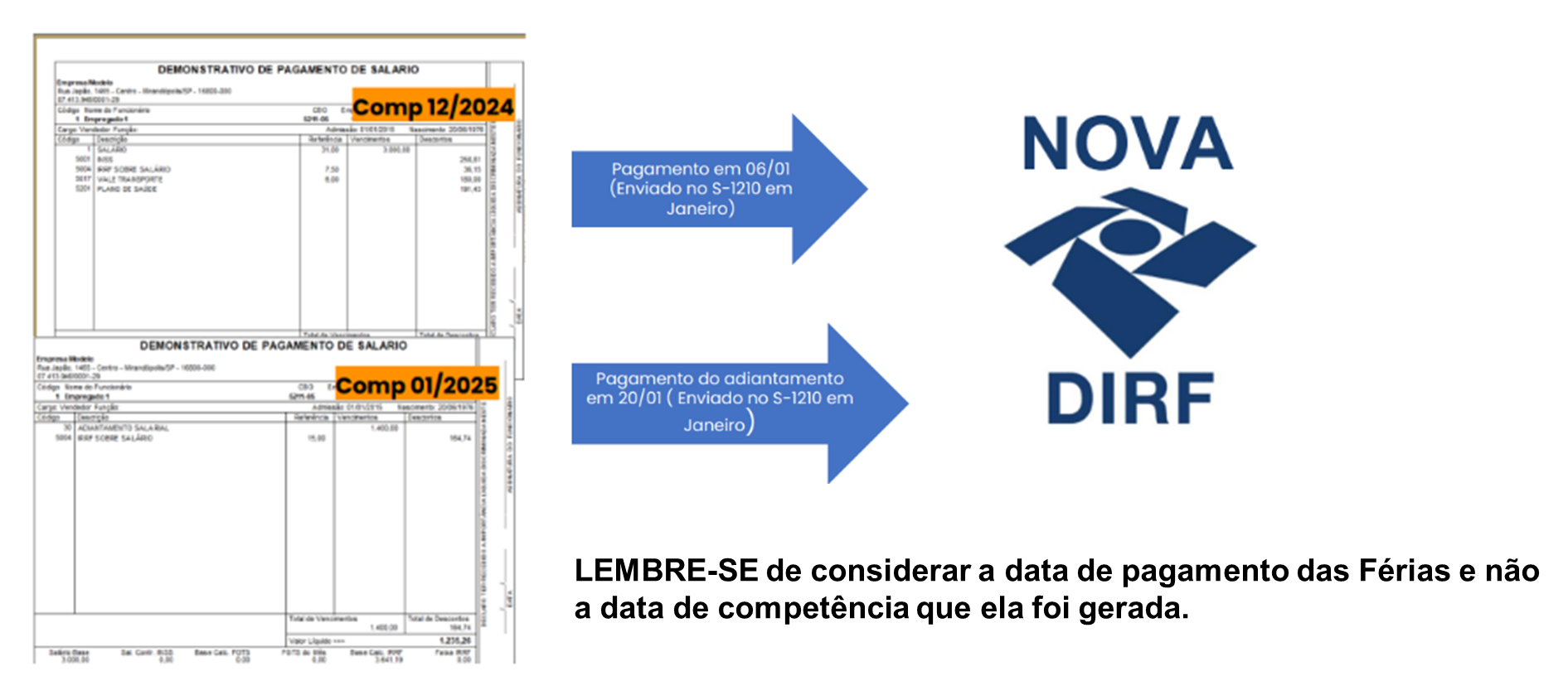 - Data de pagamento informada no sistema erroneamente, leva a divergências na DIRF.