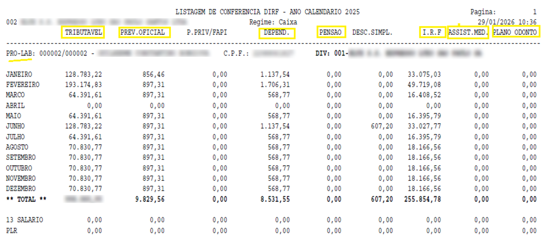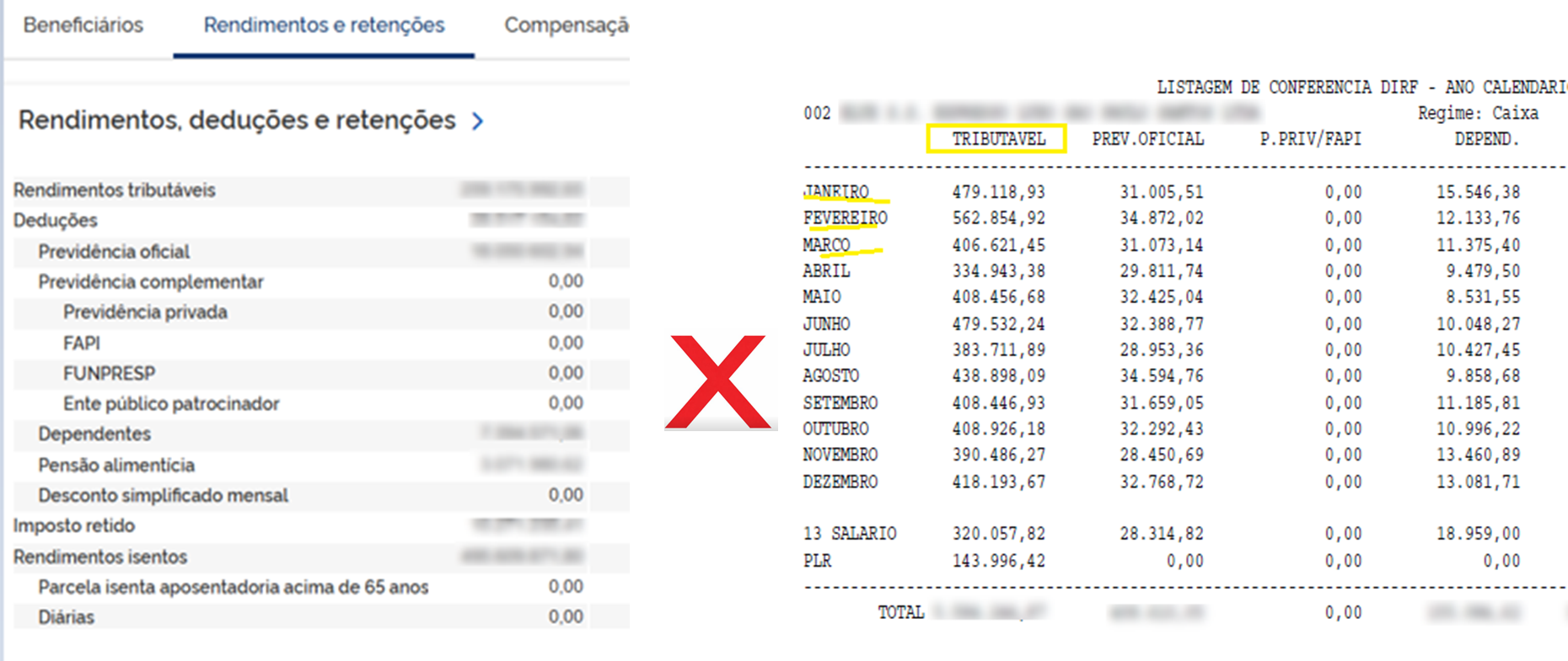 3o Passo – Conferência individual Listagem Sistema x Totalizador do eSocial de IR S-1210