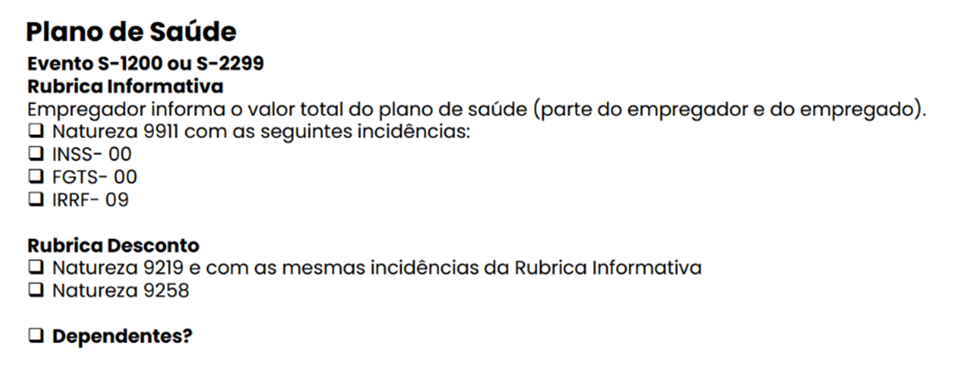 - Informaçõs de Plano de Saúde (titular/dependentes)