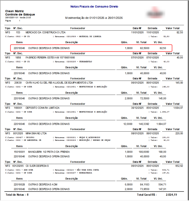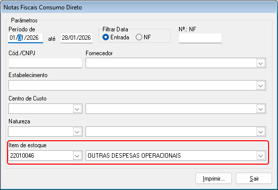 Implementar um novo Filtro “itens” ao relatório de NF de Consumo Direto |