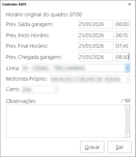 Nosso intuito com a mudança, é para ser possível informar mais horários, como os horários de saída e chegada garagem.