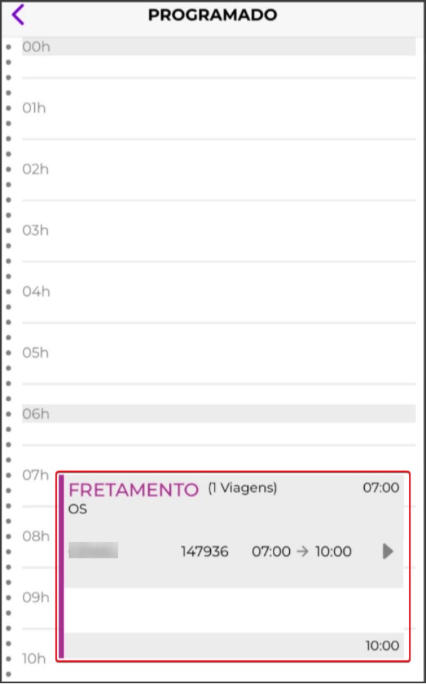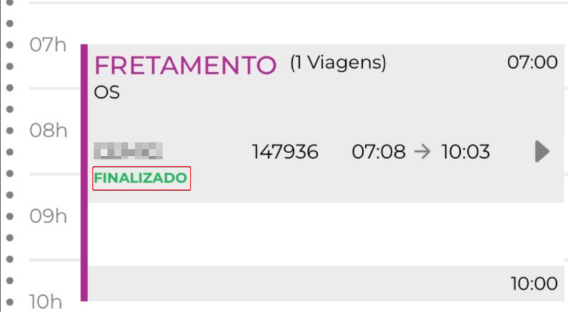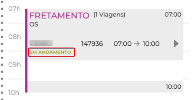 Que fique claro que, para utilização do TaOn não é necessário a utilização do parâmetro para habilitar mais horários. Sem a marcação também vai funcionar, entretanto, o usuário não terá pleno controle dos horários exibidos no app. Recomendamos a marcação para uma melhor usabilidade. Fretamento Continuo: Após confirmação da viagem no painel de escala de serviço, no aplicativo Ta-On dentro da rotina Baixa Fretamento você irá visualizar a viagem como ‘Fretamento’. Ela estará disponível na grade de horários dentro do horário da viagem, conforme abaixo.