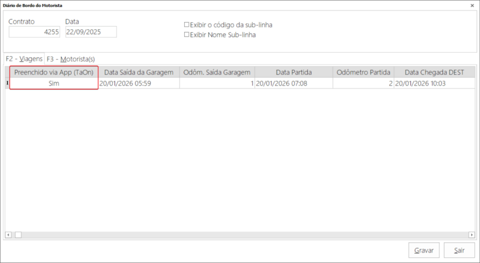Após finalizado, não será possível fazer alterações pelo app TaOn. Dentro do SigaFR, no diário de bordo será possível ver todas as informações que o motorista informou pelo TaOn. E caso os dados presentes ali sejam oriundos do TaOn, terá uma coluna informando.
