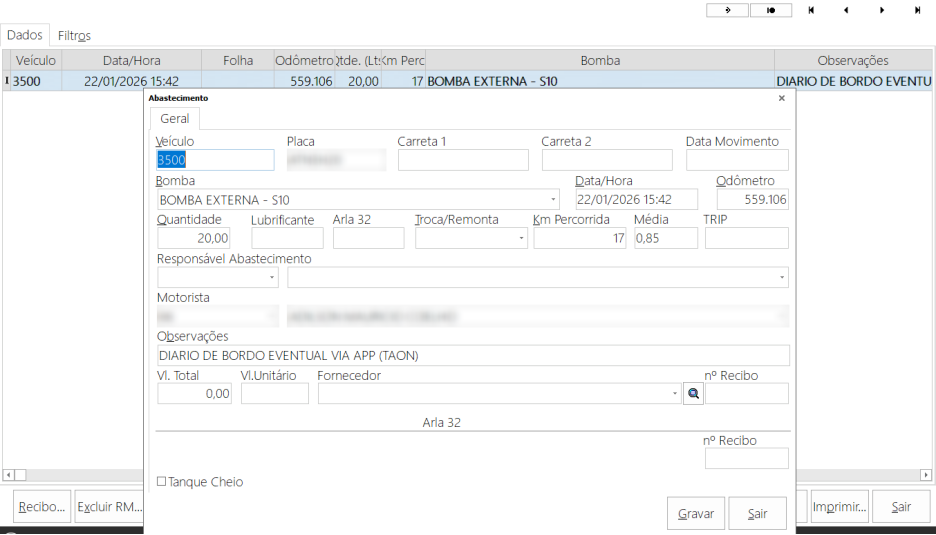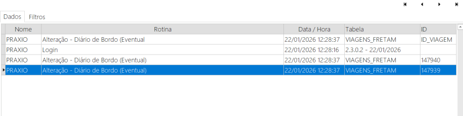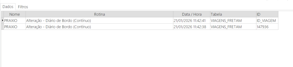 Caso, dentro do SigaFR o usuário grave o diário de bordo novamente, será gerado um registro de atividades para segurança do motorista: